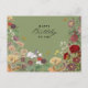 A charming vintage birthday card framed by delicate floral designs. The card features an ornate border of classic flowers in soft pastel hues, evoking timeless elegance. The other side of the postcard contains a heartfelt birthday message written in an elegant script font, with room for a personal note. Perfect for adding a touch of nostalgia to any birthday celebration.
