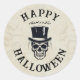 Vintage Happy Halloween Skull Classic Round Sticker