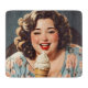 Vintage Happy Woman Eating Ice Cream Cutting Board – a delightful and functional addition to your kitchen! This charming cutting board showcases a vintage-inspired illustration of a joyful woman savouring a delicious ice cream cone, radiating happiness and nostalgia.