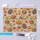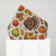 A warm, nostalgic illustration celebrating the abundance of fall. Featuring pumpkins, apples, corn, wheat sheaves, acorns, autumn leaves, woven harvest baskets, and proud turkeys, the design evokes a classic farmhouse Thanksgiving charm. A cozy rural homestead scene ties the composition together, while rich autumnal tones—burnt orange, golden yellow, deep red, and earthy brown—create a timeless seasonal palette.