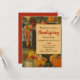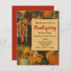 This Thanksgiving dinner party invitation features a beautiful harvest scene of lush fall colours. Seasonal produce such as pumpkins, corn, beets, and cauliflower are seen hanging, in a basket and on the ground.