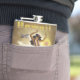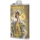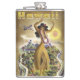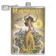 A charming vintage vinyl wrapped flask featuring a travel poster from United Air Lines of a hula dancing Hawaiian woman.