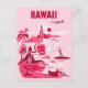 Anyone would love to receive this vintage tropical pink travel postcard featuring retro illustrations of the ocean, islands, palm trees, and a woman at a luau!