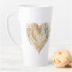 The heart on this tall latte mug is designed in the baroque vintage style with romantic decorative flourishes and a gradient pattern in ivory, browns and a touch of light green on the right and left sides. Personalize by adding an intial in a classic script typeface in the heart's centre, either the same initial or different.