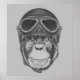 This design features a portrait of a chimpanzee wearing a vintage motorcycle helmet and goggle.