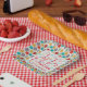 Great accent for an outdoor summer party. Bright colors, vibrant floral design