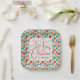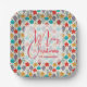 Vintage Christmas tree ornaments small square paper plates compliment your holiday or Christmas party. Merry Christmas and your name in chic lettering personalizes this design. MATCHING items in our store.