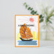 This postcard is a reproduction of a vintage travel poster for Hong Kong in China.