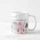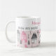 A cute pattern that features vintage watercolor houses in pink, grey, and white on a pink background graces the lower part of this neat holiday coffee mug. "Merry Christmas" is in pink script across the top with the sentiment "From Our House" and "from" names and date below it. But all of the text can be edited. Be sure to change the example "from" names and date to those you want.