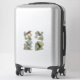 Set of four stickers with vintage illustrations of hummingbirds. Colourful green and red hummingbirds perched on tropical plants with yellow flowers.