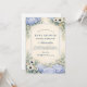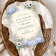 A refined dusty blue hydrangea design framed in an elegant baroque-inspired composition. Voluminous hydrangea clusters in soft powder and periwinkle tones are paired with creamy ivory florals and muted sage greenery, creating a balanced, symmetrical garden frame. The warm parchment-style background adds a subtle antique touch while keeping the overall look airy and sophisticated. Ideal for a timeless celebration with a romantic, elevated aesthetic.