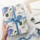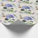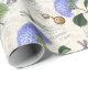 Vintage inspired wrapping paper features hydrangea illustration, pocket watches, dragonflies and ephemera background