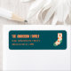As you see the design features a unique beige and red and green hand illustrated Christmas stocking. With beige and red hand written typography of your family . And your handwritten return address. All on blue background. That is easily customizable.