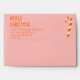 a vintage retro minimalist simple red Merry Christmas holiday envelope. As you see it features a plain pink warm colour background with beige and red handwritten script typography of Return address info. Along with your return address. And hand drawn and illustrated beige and red Christmas candy bar.