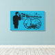 Vintage illustration of a man using binoculars. What does he see on the horizon? A sailboat with two young women on board. Customizable humourous retirement canvas print. You can easily change background colour and size by clicking the customize button. Don't forget the whole collection of canvas with vintage illustration.