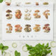 Vintage illustration chart with a selection of common edible and non-edible mushrooms with scientific (latin) names.