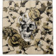 vintage illustration of a skull surrounded and covered with plants and flowers. Vintage engraving style, yellow, golden, khaki colours