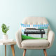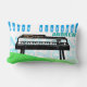 Vintage illustration of an electric organ in an abstract landscape with green hills. Various styles of lettering. Big numbers in background (25, 26, 27, 28, and 29) 30th is on the organ as "partition". Birthday lumbar pillow.