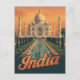Journey to the heart of India with this beautiful vintage-style poster. It features a stunning illustration of the iconic Taj Mahal, perfectly reflected in its tranquil reflecting pool, all under a warm sunset sky. This poster captures the timeless and romantic beauty of one of the world's most famous landmarks. It's the perfect wall art for travel enthusiasts, history buffs, or anyone who wants a beautiful piece of India in their home.