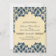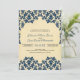 Vintage Indigo, Damask Wedding invitations. Vintage ivory, gold background with an overlay of a blue damask pattern. This is a great invitation for traditional and rustic style weddings. Additional colour options are available, coordinating wedding decor is also available at MetroEvents on Zazzle.