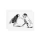 Vintage illustration black and white Victorian Era fairy tales and nursery rhymes image by Edward Lear. There was an old person of Skye, who waltzed with a Bluebottle fly. A funny, silly, and humourous design featuring two insects dancing.