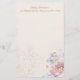 Pretty vintage inspired stationary done in ivory with colourful flowers on the right bottom and pale tan flourishes, on the bottom left. Personalize the text, on the top header of the paper, to read what you want. Gorgeous stationery for yourself or as a nice little gift idea to her.