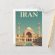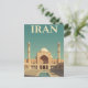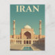 A captivating, vintage-style travel poster featuring an artistic illustration of a majestic Persian mosque and courtyard in Iran. The design utilizes a beautiful, muted colour palette, evoking the style of classic mid-century travel advertisements. This retro-inspired artwork is perfect wall décor for travel enthusiasts, fans of Middle Eastern architecture, and those who appreciate Islamic art or history-themed prints.
