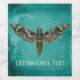 Customizable labels feature a dark and distressed teal background with detailed and colourful vintage iridescent moth illustration.