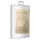 The product is a good size and came exactly as it was pictured. The lid is not attached to the flask, which could be dangerous on drunken nights... The print came out surprisingly well and looks very sharp. Would definitely recommend.