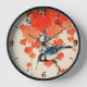 Clock in a vintage Japanese painting of a blue jay bird and wild grapevine, in shades of autumn orange and deep blue, on a light beige background, digitally enhanced