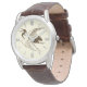 Vintage Japanese Drawing of a Crane, Brown Watch