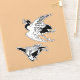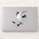 Sticker in digitally enhanced details from a vintage Japanese sketch of a flying crane in black and white