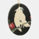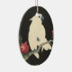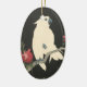 NewParkLane - Ornament, featuring a vintage, early 20th century Japanese Fine Art print with a white cockatoo on a branch of a pomegranate tree; against a black background.