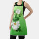 Apron in a vintage Japanese illustration of large, white peony blossoms, with green leaves, on a soft green gradient background, digitally enhanced and coloured