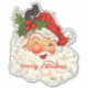 Merry Christmas greetings from a jolly old vintage Santa Claus with a full white beard and rosy red cheeks a sprig of holly in his red snow covered hat.