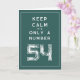 Vintage keep calm text custom 54th Birthday card. Fun Keep Calm and Carry On quote for 54 year old. Make your own age specific spoof with custom age number. Cool greeting card idea for men or women. Rustic distressed typography template. Custom colour background. Personalize with message inside.