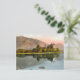 Postcard with a vintage photo lithograph of Kilchurn Castle in Scotland from 1895 pictures the ruins of a medieval castle on the bank of a lake, with a pink sunset sky and mountains in the background. Digitally cleaned, enhanced and artistically rendered to resemble pen and ink with watercolors. Kilchurn Castle is a ruined 15th and 17th century structure on a peninsula at the end of Loch Awe in Argyll and Bute, Scotland. It was built around 1450 by Sir Colin Campbell, first Lord of Glenorchy.