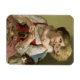 Sweet, vintage picture of a mother knitting while her child hugs her, with a cat near by, is featured on this magnet. A lovely little gift for Mother's Day, needle art and vintage fans too!