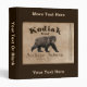 A label from a can of mythical Kodiak Brand Sockeye Salmon circa 1879. The monochrome (brown) image features a Kodiak Bear (Ursus arctos middendorffi) and a Sockeye Salmon (Oncorhynchus nerka). Text reading "Kodiak Brand Sockeye Salmon" and other information about the mythical Afognak Packing Company and how to prepare the fish. The left half (bear) is on the front, the right half (salmon) is on the reverse side. It is rare to find a label this old in such good condition. There is only minor discoloration, and a small tear in the upper left corner. There are two places for you to customize this product by adding your own text on the front, and another on the spine.