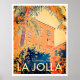 Original Vintage Republic poster design featuring the iconic pink La Valencia Hotel by the sea shore near San Diego, California.