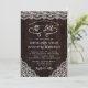 Unique, vintage card design featuring lace, corners and border, handwriting "At Last" and Reception to follow" script, on an old barn background. Use Customise tool to add your info. More ideas in my Boho Wedding Collection.