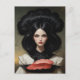 A gorgeous lady poses with a plate of raw meat retro style portrait painting AI generated art