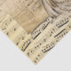 Collaged vintage letters with old sheet music and a lady being groomed.