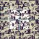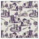 Vintage illustration toile pattern using designs from the National Gallery of Art done in dark purple.