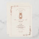 Illustration of a vintage lantern with floral botanical border. Illustrations and script are foil. Text is terracotta. Background is off white.