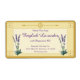 Vintage style corner accents and top centre bar in a deep amber hue set on lighter hues of amber. Two Lavender plants in bloom to the left and right. Centre area has six matching coloured customizable text lines. Perfect for soap, candles, pot-pourri, bath salts.