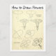This postcard is a reproduction of a vintage illustration from "Drawing Made Easy: A helpful book for young artists; the way to begin and finish your sketches, clearly shown step by step," by George Edwin Lutz. It shows how to draw two flowers: the narcissus and the morning glory.