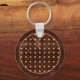 Vintage Leather Brown and Gold Damask Pattern Keychain