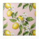 A vintage-style pattern ceramic tile featuring bright lemons with lush green leaves, accented by delicate white flowers, all set against a cheerful pink background. This nostalgic botanical design captures the essence of sunny days, evoking a timeless summer feel perfect for seasonal charm and nature-inspired aesthetics.