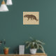 Stylish poster for big cat lovers features a vintage brown tinted leopard side view illustration on light tan "burlap" background